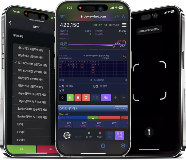 이브이 모바일 출시로 바카라오토프로그램은 이제 더 이상 PC로 제한을 두지 않게 되었습니다. 언제, 어디서나 게임을 즐길 수 있는 환경! 이브이가 만들어 갑니다.